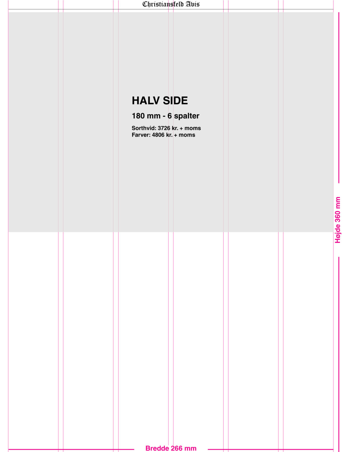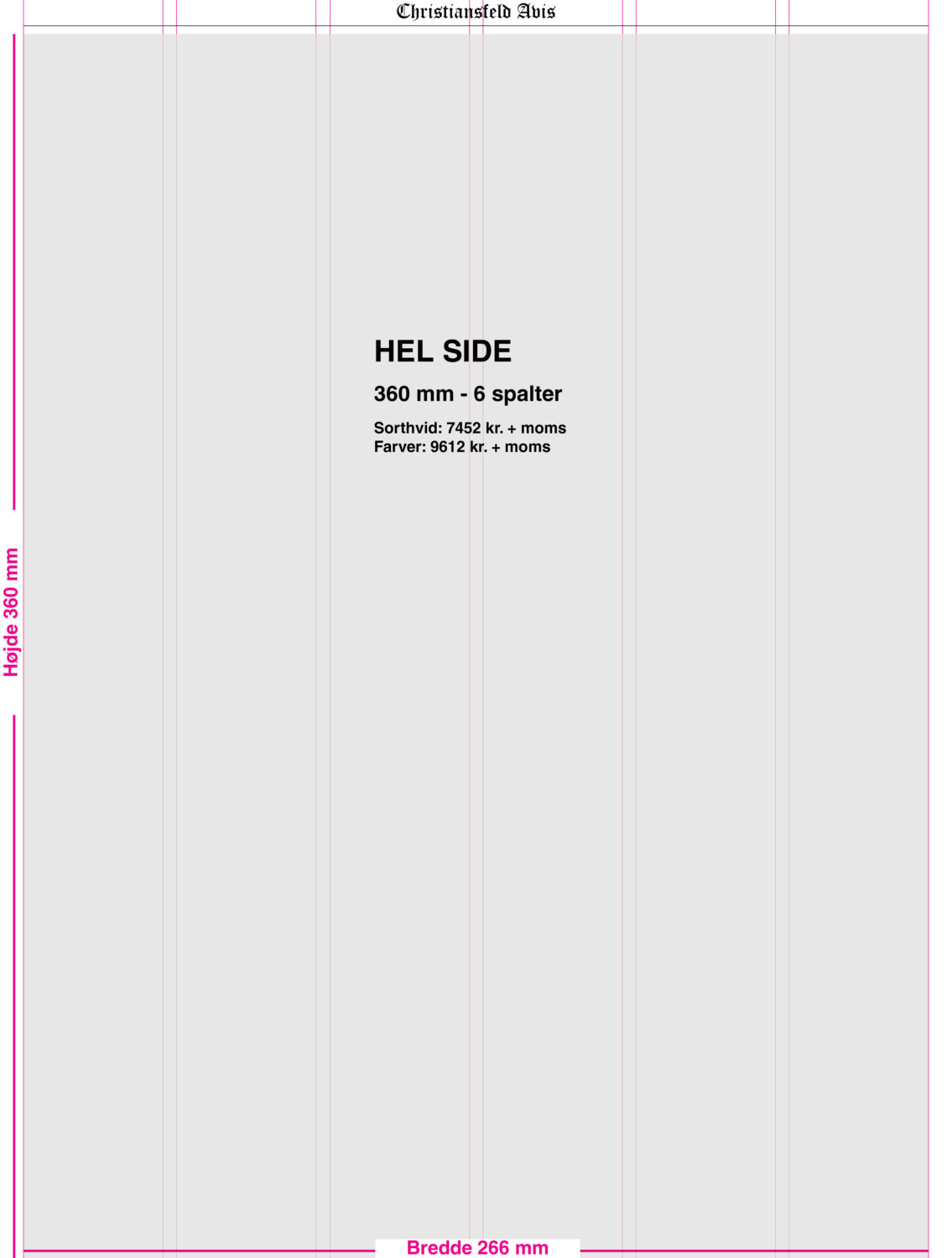 Nedenfor ses priseksempler på større annoncer – uden rabat.
