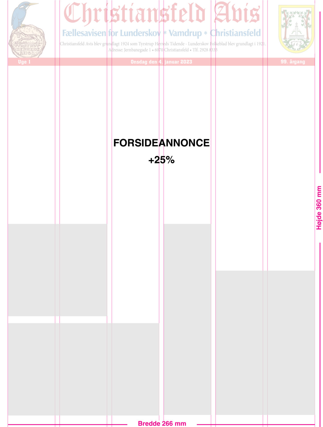 Afleveringsfrist for annoncer, som der ønskes korrektur på, er mandag kl. 12.00. Rubrikannoncer kan modtages senest tirsdag kl. 9. Større annoncer skal modtages senest fredag kl. 9.